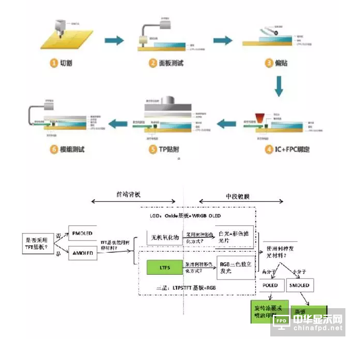 AMOLED模組后道組裝流程,已蒸鍍封裝的OLED面板首先被切割成實(shí)際產(chǎn)品所需尺寸,并進(jìn)行測(cè)試。