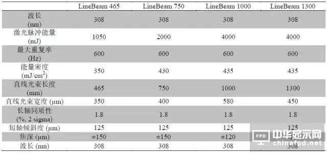 Table I5 Coherent LineBeam 產(chǎn)線用 ELA 激光設(shè)備參數(shù)(1)