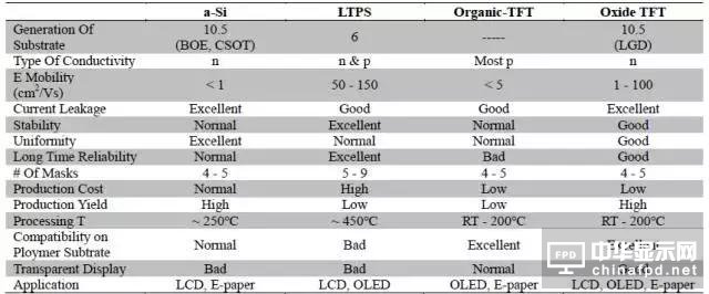 FPD中常見的幾種 TFT如 Table I1所示。
