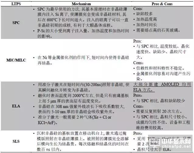 LTPS 晶化有4 種形式(Table I2) (3) :