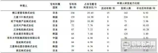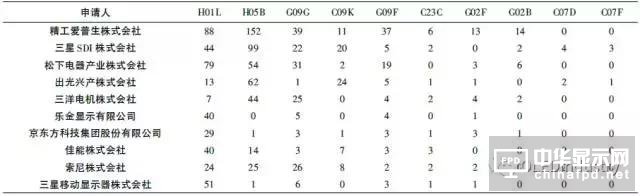 OLED 設(shè)備技術(shù)主要前十申請人