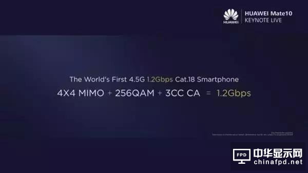 通訊是一個手機的安身立命之本,而華為作為信息與通信解決方案供應商的優勢也體現在了這一點上。華為Mate10使用了4*4MIMO、5CC CA以及256QAM等多種先進技術,將碎片化的頻譜聚合成為最大帶寬,聚合峰值能力最高可達到1.2Gbps的下載速率。據華為稱,麒麟970能夠在全球范圍內實現各運營商的最高速率組合,在世界的每個角落,麒麟970可以幫助用戶獲得更快的上網速度。