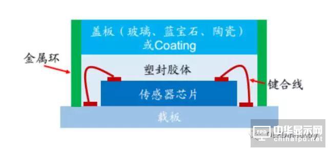 目前大多數(shù)的指紋識別芯片封裝還是采用wire bonding 工藝,采用wire bonding 工藝會有金屬引線的存在,為了保證指紋識別芯片表面與蓋板材料或者coating 貼合,則需要進行塑封,保證芯片表面平整并將金屬引線掩埋。