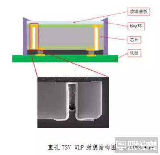 TSV 封裝(硅通孔封裝技術(shù))可以使芯片的有效探測面積大幅度增加,并且使芯片的厚度和模組的厚度都實現(xiàn)縮減。但現(xiàn)在主要使用在高端機型前臵蓋板指紋識別和盲孔電容式UnderGlass 指紋識別中。