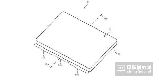 在這份專利文件中蘋果這樣描述道:“一款電子設(shè)備擁有一處可彎曲部分,允許該設(shè)備被折疊。該設(shè)備配備一塊柔性屏幕,該屏幕擁有一處可彎曲區(qū)域。當(dāng)設(shè)備折疊后,屏幕也可以隨著彎曲軸進(jìn)行彎曲。”