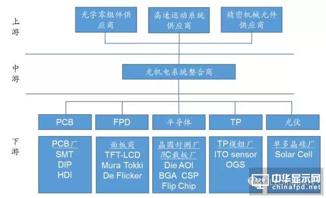 AOI 設備的上游主要包括光學元件供應商和機械元件、運動系統(tǒng)提供商,其中機械設備與其他技術的通用性較高,一般廠商均可提供;
