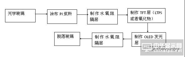 2、以聚酰亞胺為基板的軟屏,其他以超薄玻璃的軟屏未見量產(chǎn)柔性AMOLED的工藝