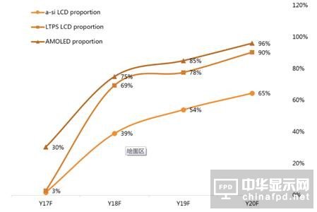 面屏在AMOLED顯示屏智能手機中的滲透率即可達到30%,而且憑借其在高端產品領域的優勢,預計在2018年即可達到75%的高滲透率水平;對于使用LTPS LCD顯示屏的智能手機而言,全面屏的滲透速度要相對慢一些,但隨著此趨勢在中端智能手機市場的普及,預計到2020年全面屏在LTPS LCD顯示屏智能手機中的滲透率也將達到90%;至于a-Si LCD產品,其本身不易實現超窄邊框的技術局限性限制了其在全面屏領域的使用,全面屏滲透率增速較為緩慢。但其相對低廉的價格以及全面屏在低端手機上的應用也為其創造了機會,預計至2020年全面屏在a-SiLCD產品中的滲透率也將可達到65%。