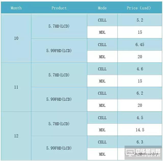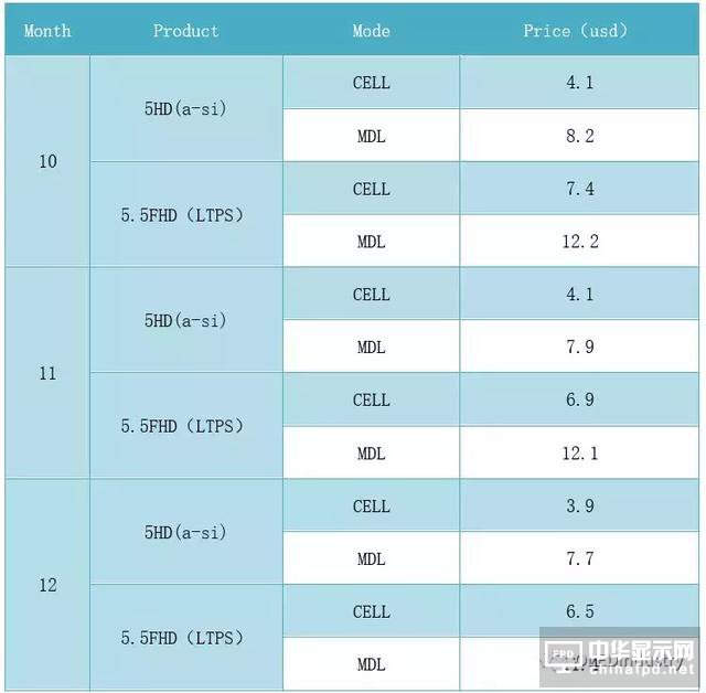 但是進入11月下旬,內銷市場備貨需求開始減緩,a-Si手機面板供給趨于寬松,帶動整體市場價格開始下降,以16:9 產品為主, 18:9產品價格暫時維持穩定。
