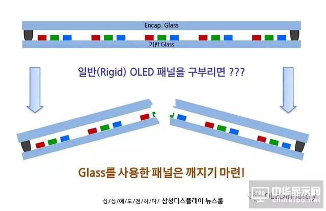 在上述步驟中,您可以看到重復使用的單詞。就是“玻璃”一詞。 普通的OLED(剛性)面板使用玻璃作為基材,而封裝材料也使用玻璃。這與柔性OLED面板不同,首先不需要彎曲,所以即使面板的頂部和底部都是玻璃,也沒有問題。