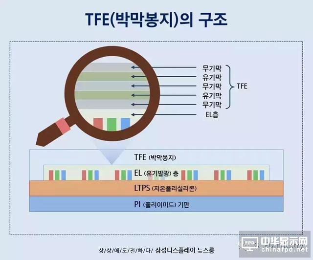 不僅可以靈活的彎曲,而且它采用薄膜封裝(TFE)方法,能夠有效地阻止空氣和水分滲入到OLED有機層。