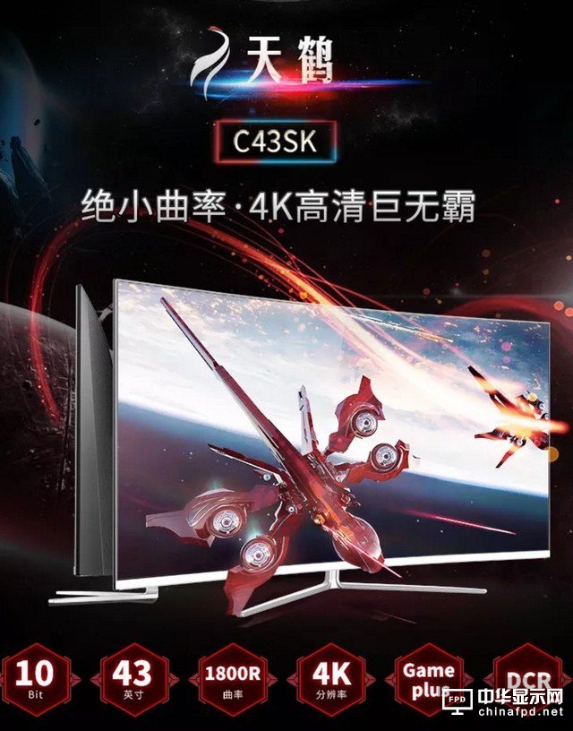 比如泰坦軍團(tuán)C43SK天鶴,媲美影院巨幕的43英寸大屏,還是4K,還是10位色,還有DCR、GAMEPLUS等功能,讓您暢爽游戲,辦公、設(shè)計(jì)也OK哦~對(duì)了,別忘了,還是1800R曲面,秒殺眾多液晶電視~