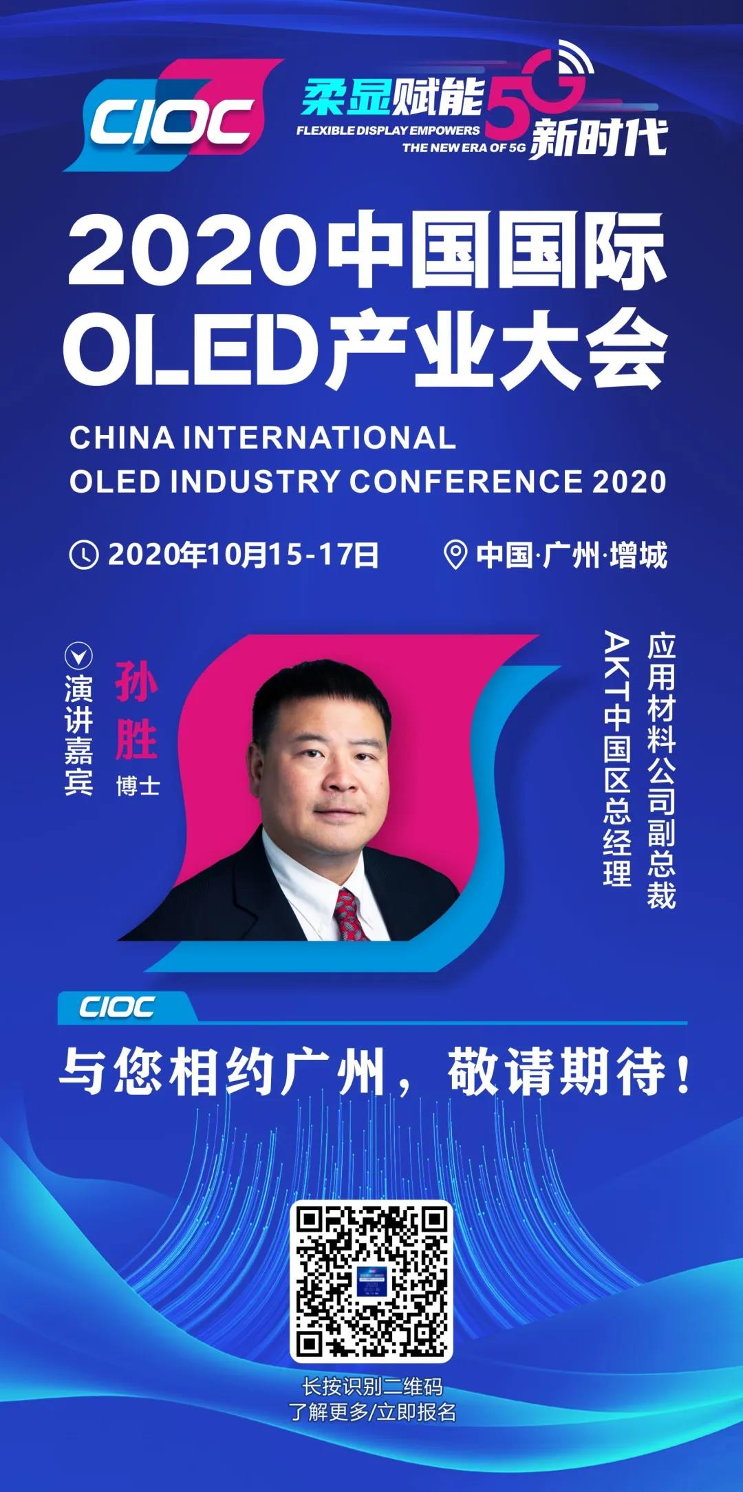 應用材料公司副總裁、AKT中國區總經理孫勝博士已確認出席2020中國國際OLED產業大會。