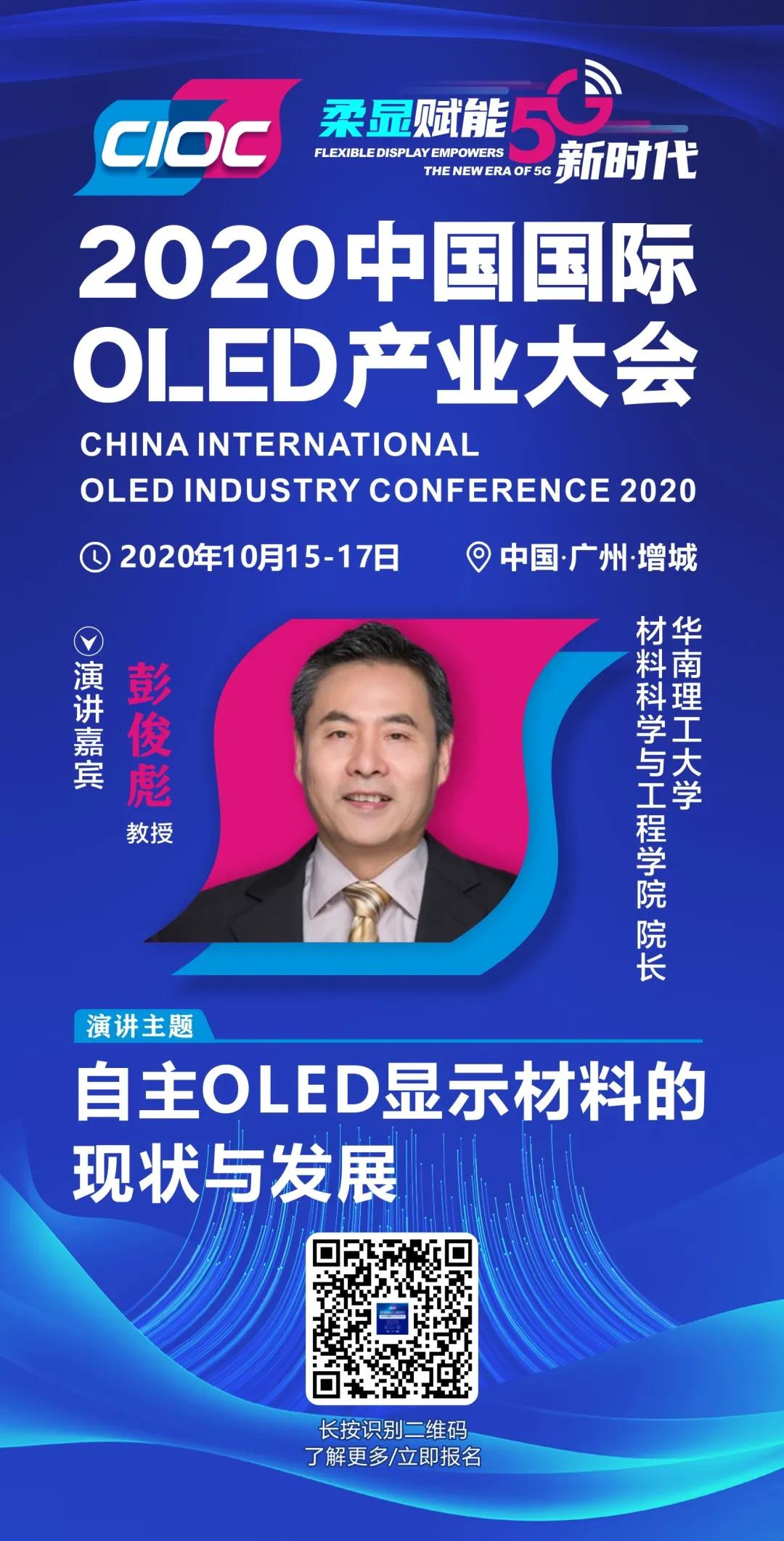 華南理工大學材料科學與工程學院院長彭俊彪教授已確認出席2020中國國際OLED產業大會。