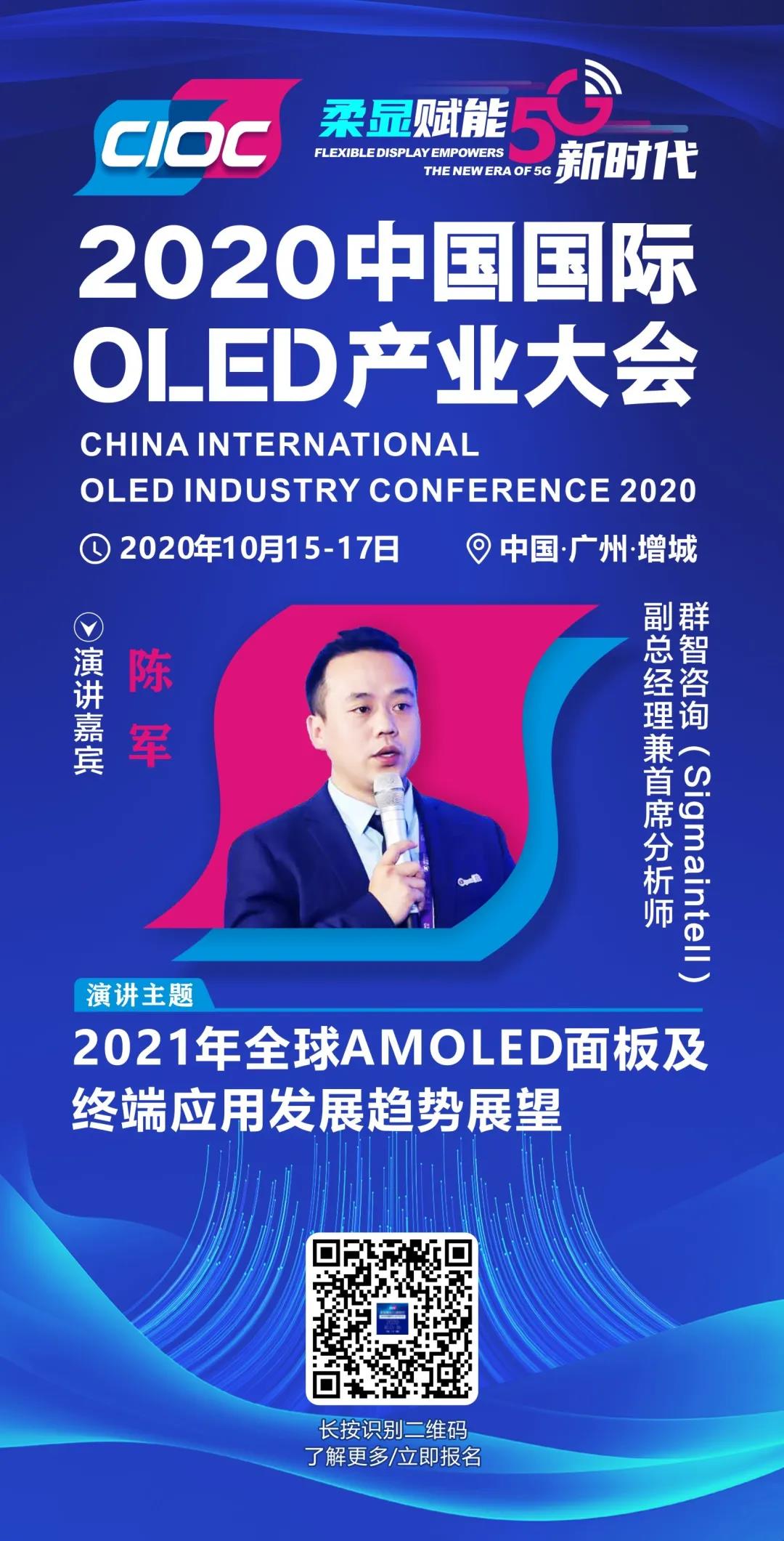 群智咨詢(xún)(Sigmaintell)副總經(jīng)理兼首席分析師陳軍已確認(rèn)出席2020中國(guó)國(guó)際OLED產(chǎn)業(yè)大會(huì)。