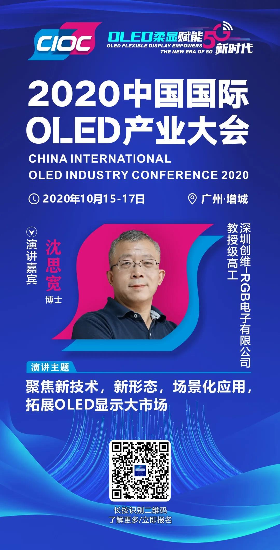 深圳創維-RGB電子有限公司教授級高工沈思寬博士已確認出席2020中國國際OLED產業大會。