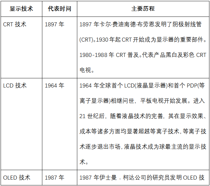 不難看出顯示技術(shù)每一個階段的發(fā)展都是伴隨著新技術(shù)和新應(yīng)用的產(chǎn)生。