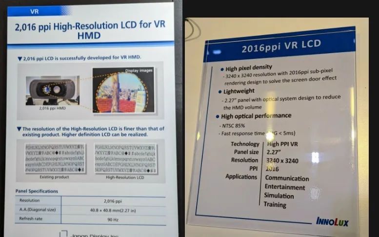 近日,JDI(日本顯示器公司)和Innolux(群創光電)共同展示了用于VR頭顯的緊湊型3K LCD面板。