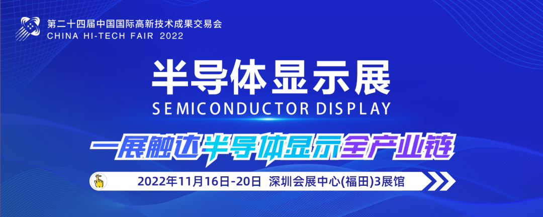2022年11月16日-20日,深圳會展中心(福田)3展館,讓我們相約第二十四屆高交會-半導體顯示展!展示范圍涵蓋顯示技術(shù)、應用、材料及設備;半導體材料、設計、設備等熱點內(nèi)容!