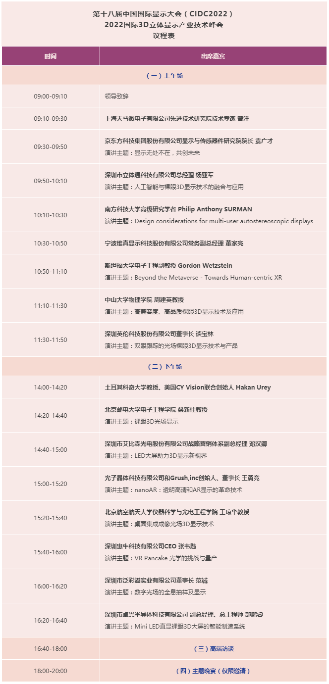目前中國的立體顯示還處于成長期,為助推立體圖像技術研發及其產業在我國快速發展,促進科技人員和產業同行的交流與合作,共享研究創新成果與前沿技術,加強產業之間的交流、合作與探討,拓寬研究思路,本次CIDC2022論壇同期,還將舉行2022國際3D立體顯示產業技術峰會,共同促進上下游產業鏈快速發展,進一步推動顯示產業鏈深度合作以及科技創新成果轉化。