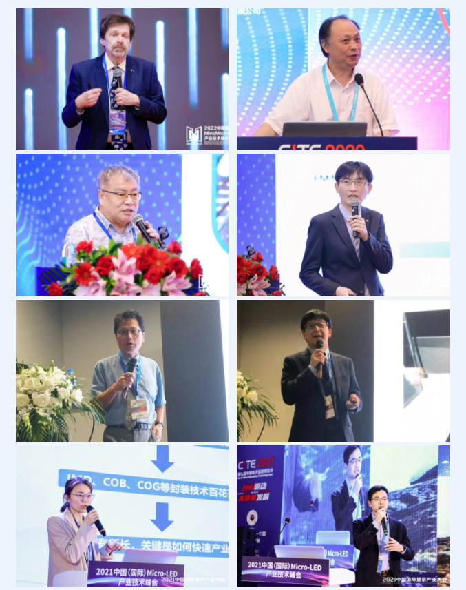 歷屆峰會邀請到了來自中國、美國、日本、韓國、歐洲等國家和地區(qū)的Mini/Micro-LED領(lǐng)域的院士專家、代表企業(yè)、院校及研究機構(gòu)、分析機構(gòu)等分享產(chǎn)業(yè)熱點、難點。eLux、錼創(chuàng)、AIXTRON SE、TOPCON、京東方、海信、TCL華星、天馬、華燦光電、三安光電、辰顯光電、新益昌、柔浩電子、諾瓦星云、康佳、Hexagem AB、科韻激光、創(chuàng)維-RGB、江西沃格光電、華引芯、隆利科技、艾比森、中麒光電、志金電子、兆馳光元、TCL工業(yè)研究院、雷曼光電、瑞豐光電、撲浪創(chuàng)新、InZiv、NS Nanotech、ATTOLIGHT、國星光電、阿爾泰、思坦科技、勁鑫科技等知名企業(yè);北京大學、南方科技大學、臺灣交通大學、華南理工大學、廣東省半導體產(chǎn)業(yè)技術(shù)研究院、深圳第三代半導體研究院、University of Michigan、廈門大學、福州大學、南昌大學等專業(yè)院校和研究機構(gòu);IHS Markit Global Korea、Yole Developpement等業(yè)內(nèi)分析機構(gòu)均帶來了產(chǎn)業(yè)鏈技術(shù)、材料、設(shè)備、終端應(yīng)用等各環(huán)節(jié)的干貨分享。