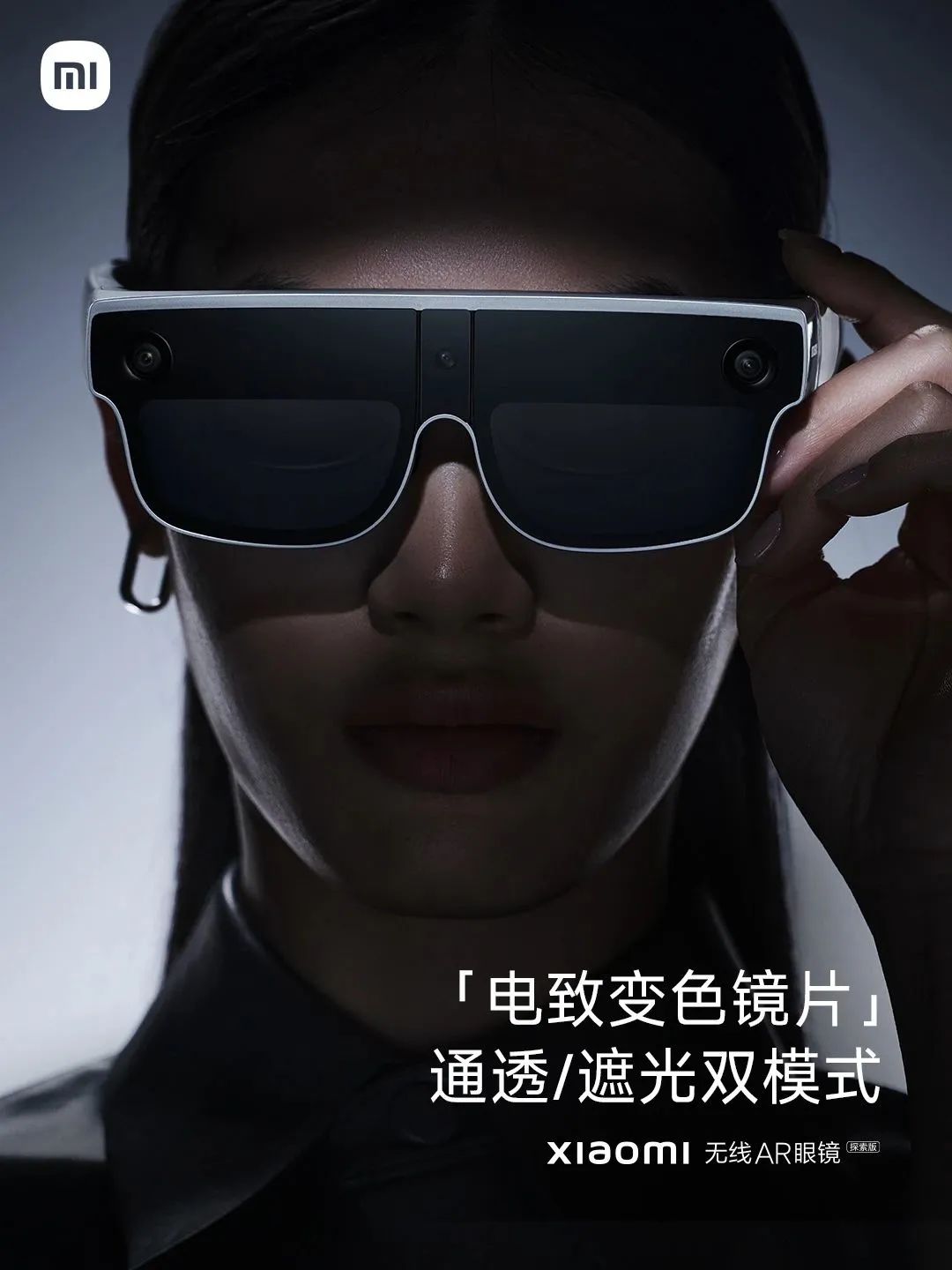 小米無線 AR 眼鏡探索版通體輕量化材質,搭配電致變色鏡片,可實現通透及沉浸雙模式顯示。