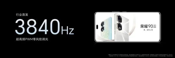 榮耀90系列這一次還帶來了全行業可能是最好的護眼體驗,首發“零風險調光護眼屏”,實現了全行業最高高3840Hz超高頻PWM調光,通過了萊茵無頻閃認證,解決了很多手機用戶擔心的屏幕傷眼難題。