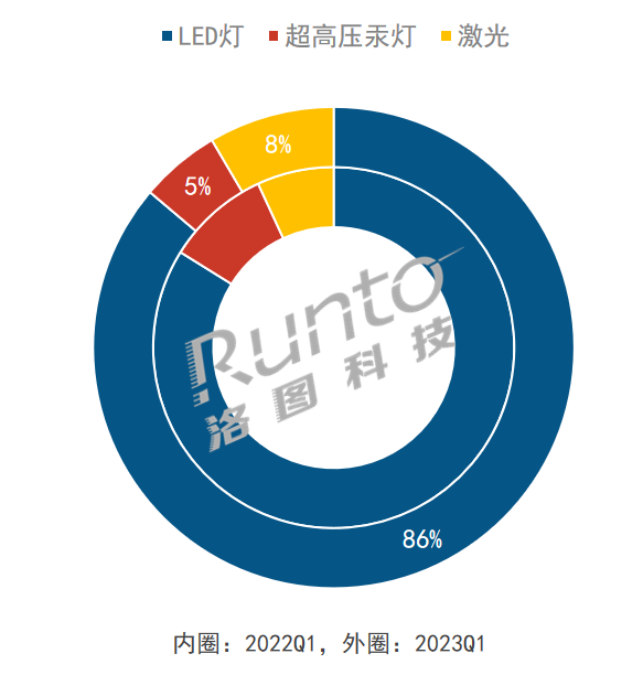 2023Q1 中國(guó)投影機(jī)市場(chǎng)出貨量光源結(jié)構(gòu)