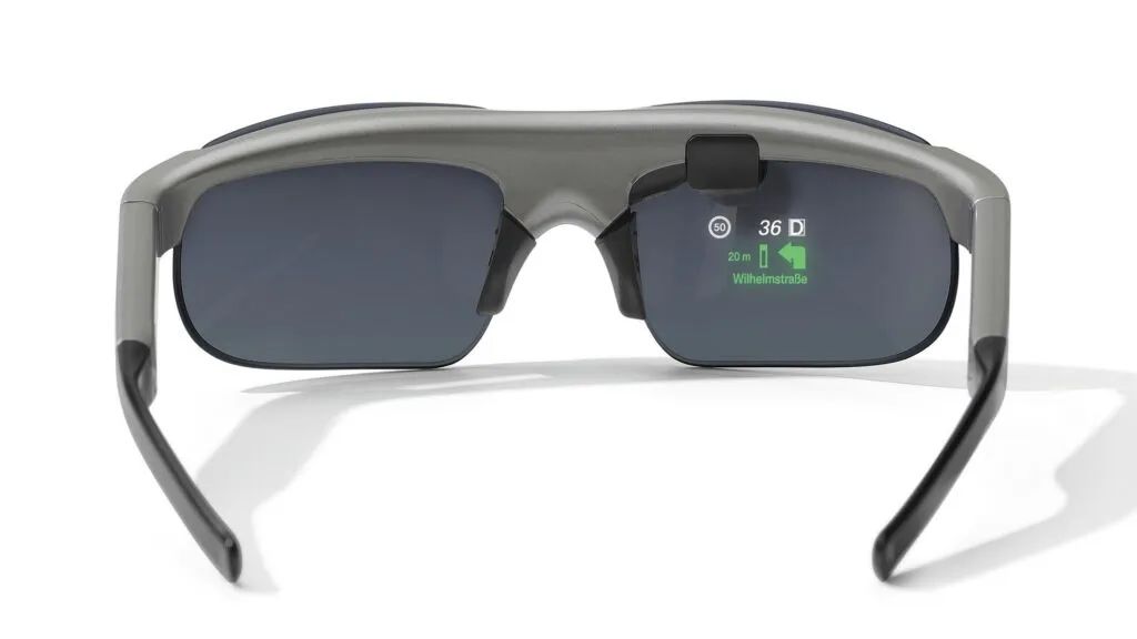這款智能眼鏡由寶馬摩托車部門開發,外觀就像一副太陽鏡,右邊的鏡片可以顯示各種信息。這有點像汽車的抬頭顯示功能,可以讓騎手在看路的同時,也能看到關鍵的信息。騎手可以根據自己的喜好調整信息的位置,而且眼鏡還可以通過藍牙連接智能設備。通過寶馬 BMW Motorrad Connected 應用,還可以顯示 GPS 數據等。