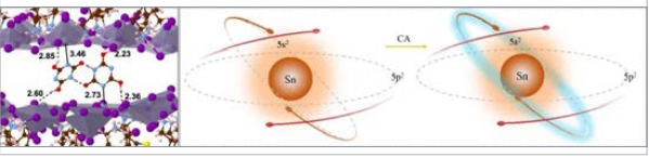 圖1.CA與錫基鈣鈦礦的具體構型及CA互變異構體誘導電子局域示意圖