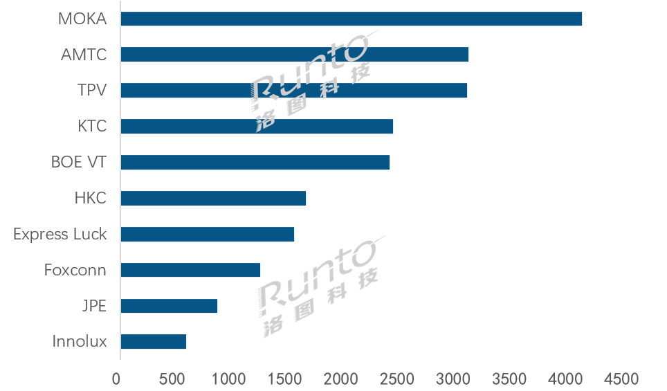 同時,工廠之間的分化在第三季度仍然較大。其中,擁有核心面板資源的MOKA(茂佳)以及海外區域增長帶動下的AMTC(兆馳)出貨增幅均超過20%,漲幅居前列;KTC(康冠)和Express Luck(彩迅)增幅也接近20%。而Foxconn(富士康)的出貨量幾乎攔腰折半,TPV則延續上半年的頹勢。