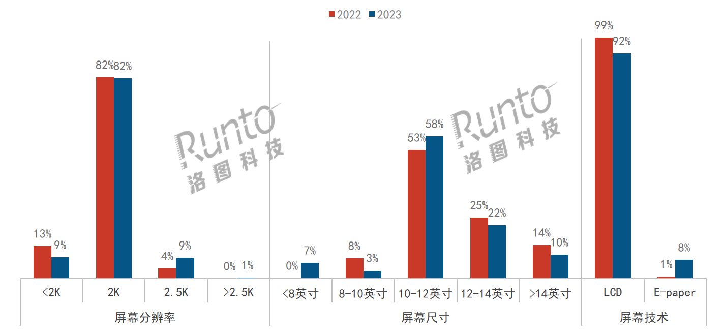 屏幕:8寸以下和10-12寸占比上漲;電子紙銷量暴增870%