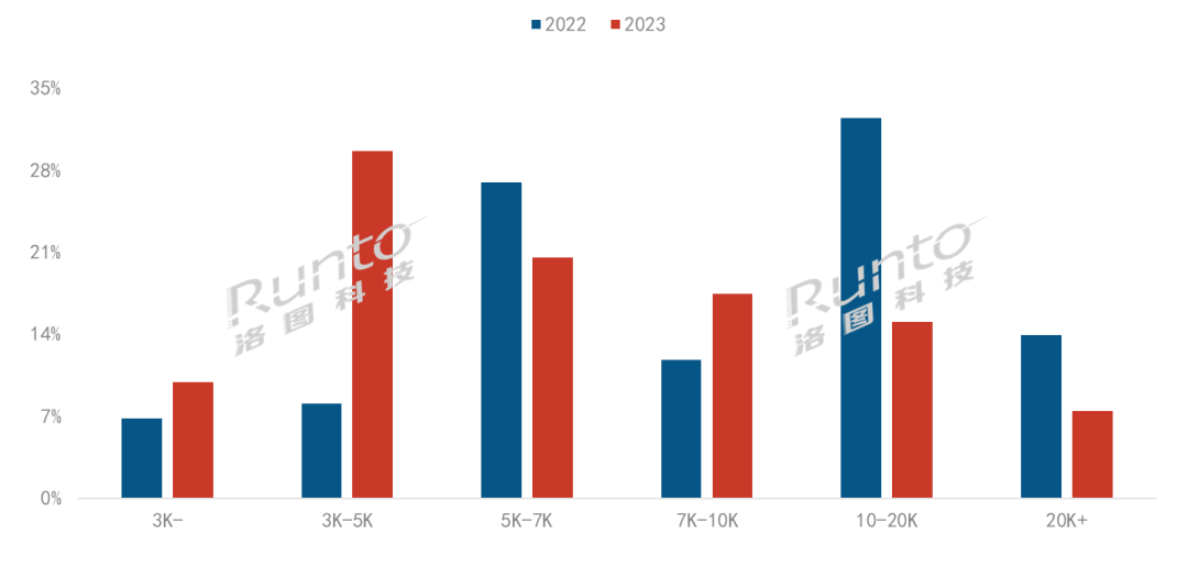 2022-2023年 中國家用激光投影市場分價格段結(jié)構(gòu)