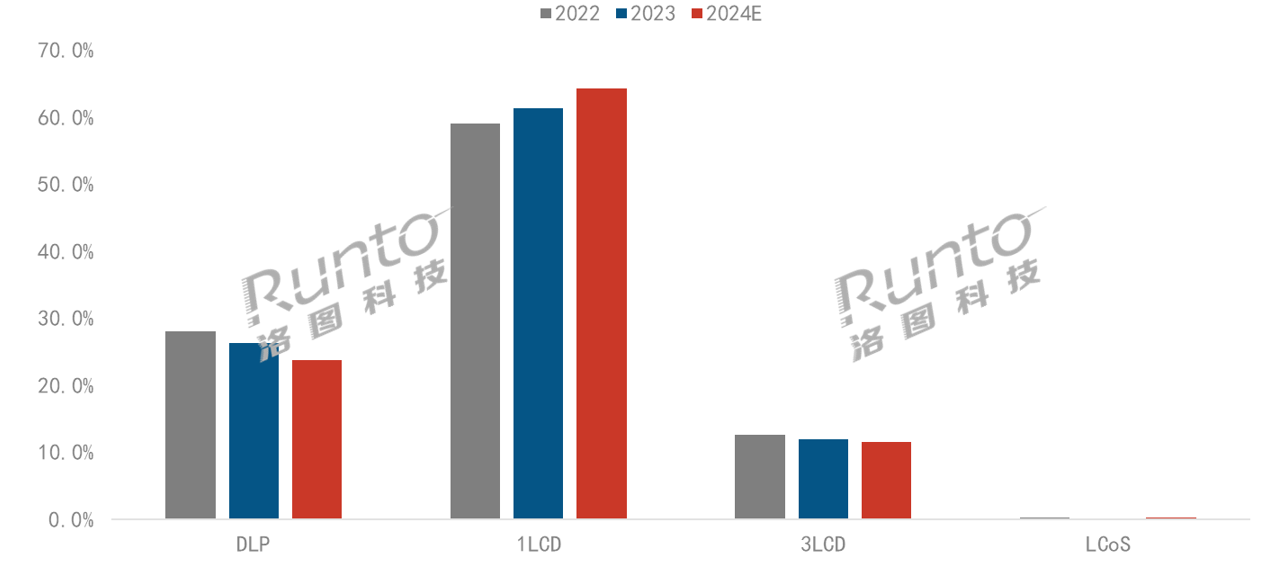 技術:1LCD技術占比超六成,3LCD穩定,DLP承壓