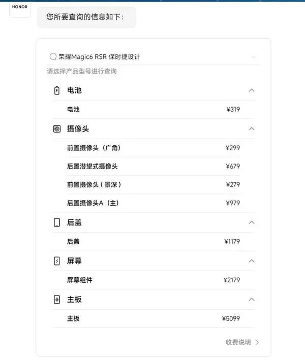 根據公布的報價表,榮耀Magic6 RSR 保時捷設計的維修中,主板維修的價格最高,為5099元。