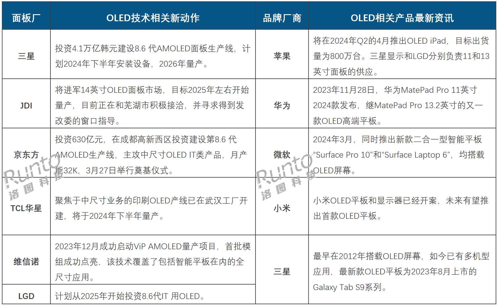 智能平板OLED技術(shù)供應(yīng)鏈和品牌布局
