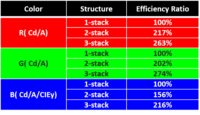 和輝光電單層和三層串聯疊構OLED器件顯示對比