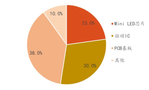 Mini-LED顯示對LED芯片數量的需求是遠大于大間距LED顯示,因此對于封裝后燈珠的需求量增加,封裝環節在產業鏈中的價值占比提升,另一方面,Mini-LED封裝方式使封裝廠商從原來單純的提供SMDLED燈珠變成了提供燈板,封裝環節在Mini-LED顯示產業鏈中的重要性日益提升。