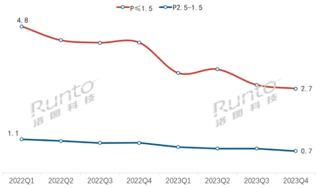 圖:2023 年中國大陸 LED 小間距終端市場分間距銷售占比