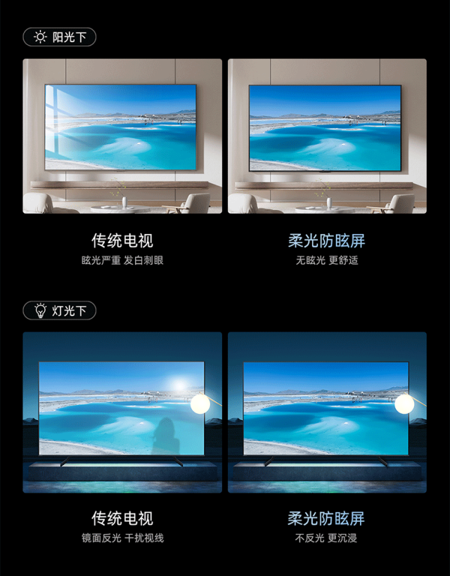 此外,海信與京東方深度定制的柔光防眩屏,具備高霧度、低反射的防眩技術,使屏幕的漫反射占比達92%,減少環境光線對屏幕的干擾,即使在明亮環境下也能享受清晰不刺眼的觀影體驗。
