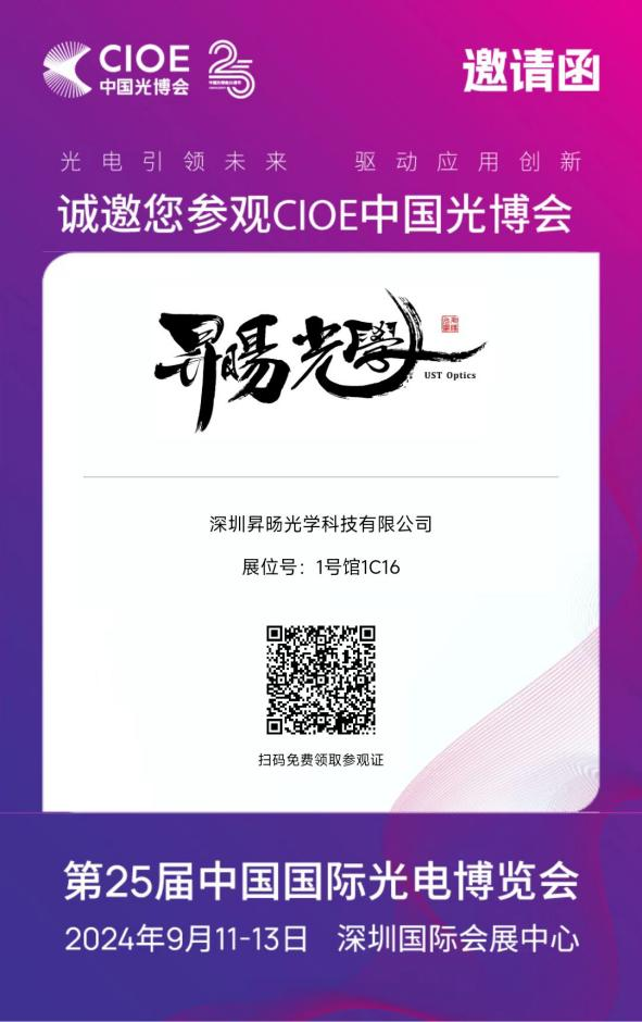 我們誠摯地邀請你參加此次在深圳國際會展中心舉行的CIOE中國光博會。歡迎大家蒞臨昇旸光學展位1號館1C16,與我們一起探討超短焦光學技術并一同展望光場顯示的未來。