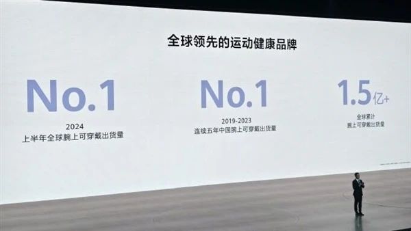 華為終端BG CEO何剛同時也公布了可穿戴設備數據,華為在2024年上半年的全球腕上可穿戴設備出貨量中排名第一,并且從2019年到2023年連續五年在中國的腕上可穿戴設備出貨量也位居榜首。全球累計的腕上可穿戴設備出貨量已經超過了1.5億。
