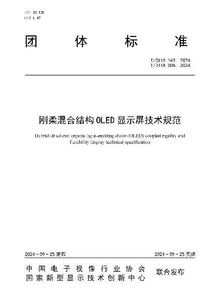 該標準詳細規定了剛柔混合結構OLED顯示屏的分類、技術要求、測試方法、檢驗規則、標記、標簽、隨行文件、包裝、運輸、儲存及應用環境,包含了核心顯示性能要求,作為首個剛柔混合結構OLED標準,這一規范的發布填補了行業空白,也進一步完善了OLED領域的標準體系,標準的制定和實施對剛柔混合結構OLED顯示屏的評價方法提供了依據,有利于提升產品質量,助力剛柔混合結構OLED顯示屏產業健康快速發展。