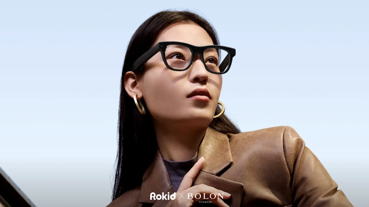 Rokid Glasses 與暴龍眼鏡合作,可選多款配色,整體重量僅 49g,支持全天佩戴。