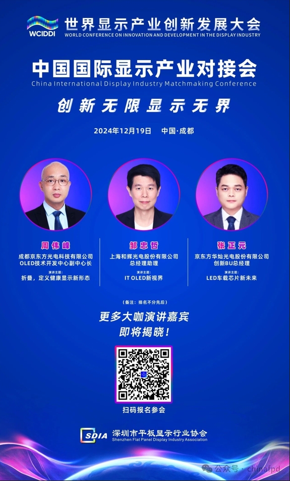 以“顯示無處不在·映照萬千氣象”為主題的世界顯示產業創新發展大會將于2024年12月19日-20日在四川成都舉辦,并組織開幕式、多場產業專題活動,以及產業對接、成果發布、產品推介、項目簽約、企業路演、展示交易、互動體驗等豐富多彩的活動。深圳市平板顯示行業協會(SDIA)作為此次大會的組織單位之一,將于12月19日下午組織舉辦中國國際顯示產業對接會,誠邀您的參與!