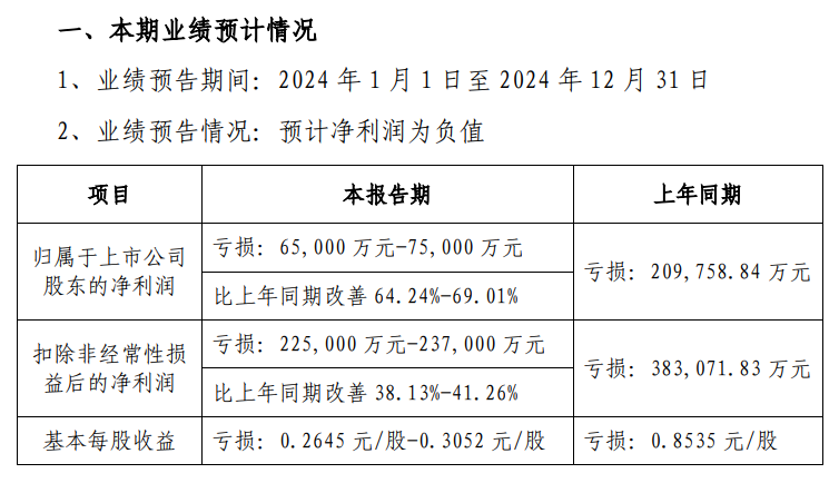 天馬微電子:2024年凈利預虧6.5億元-7.5億元,同比改善64.24%-69.01%