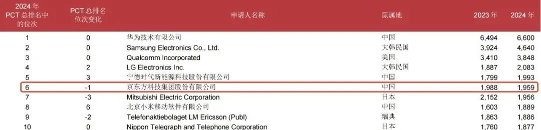日內(nèi)瓦當(dāng)?shù)貢r(shí)間3月17日,世界知識產(chǎn)權(quán)組織(WIPO)公布2024年全球PCT國際專利申請排名,中國再次憑借卓越的創(chuàng)新表現(xiàn)領(lǐng)跑全球,PCT國際專利申請量穩(wěn)居世界第一。其中,BOE(京東方)以1959件PCT專利申請量位列全球第6,連續(xù)9年進(jìn)入全球PCT專利申請TOP10。