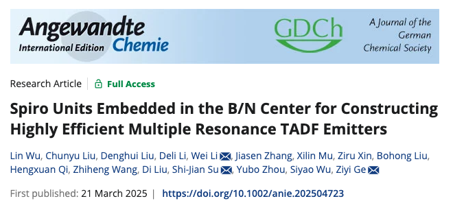 面向超高清顯示(UHD)技術的核心需求,紅、綠、藍窄譜帶發光材料的研發已成逐漸成為OLED領域的研究熱點。傳統熒光材料由于局部激發態(1LE)的展寬效應,其半峰寬(FWHM)通常大于40 nm;而磷光材料則因配體-配體三重態電荷轉移態(3LLCT)或配體-金屬中心三重態電荷轉移態(3MLCT)的電荷轉移機制導致光譜展寬,難以滿足UHD技術對高色純度的嚴苛要求。基于硼/氮摻雜多環芳烴(B/N-PAHs)的多重共振熱活化延遲熒光材料(MR-TADF),通過MR效應和剛性分子結構顯著降低了材料的FWHM,展現出作為未來OLED材料的巨大潛力。然而,其剛性平面結構顯著提高了單重態-三重態能隙(ΔEST),從而大幅衰減了反向系間竄越(RISC)速率,限制了器件效率的進一步提升。