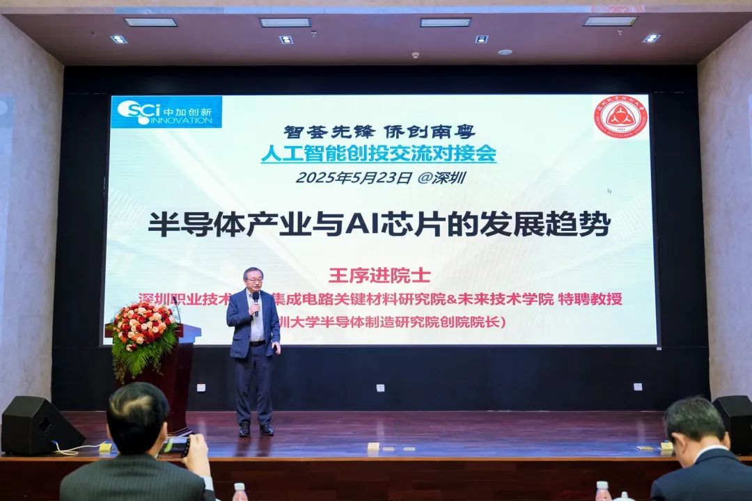 在交流會(huì)上,加拿大工程院院士、清華大學(xué)深圳研究生院張曉平與深圳大學(xué)半導(dǎo)體制造研究院創(chuàng)院院長(zhǎng)、深圳職業(yè)技術(shù)大學(xué)特聘教授王序進(jìn)院士進(jìn)分別以《人工智能與數(shù)據(jù)賦能——認(rèn)知的邊界》、《半導(dǎo)體產(chǎn)業(yè)與AI芯片的發(fā)展趨勢(shì)》為題發(fā)表主旨演講,從數(shù)據(jù)要素與硬件基石兩大維度,揭示AI技術(shù)演進(jìn)的底層邏輯與產(chǎn)業(yè)變革路徑。兩位院士的洞見(jiàn)揭示了AI產(chǎn)業(yè)發(fā)展的雙重邏輯:數(shù)據(jù)要素驅(qū)動(dòng)認(rèn)知智能突破,半導(dǎo)體技術(shù)夯實(shí)算力底座。正如現(xiàn)場(chǎng)嘉賓所言,當(dāng)數(shù)據(jù)治理與芯片革新形成協(xié)同效應(yīng),AI將加速?gòu)膶?shí)驗(yàn)室走向千行百業(yè),真正成為重塑產(chǎn)業(yè)格局的核心生產(chǎn)力。此次院士講演不僅展現(xiàn)了技術(shù)前沿的深度,更勾勒出AI與實(shí)體經(jīng)濟(jì)融合的清晰路徑,為僑界科創(chuàng)力量投身產(chǎn)業(yè)發(fā)展提供了有力支持。