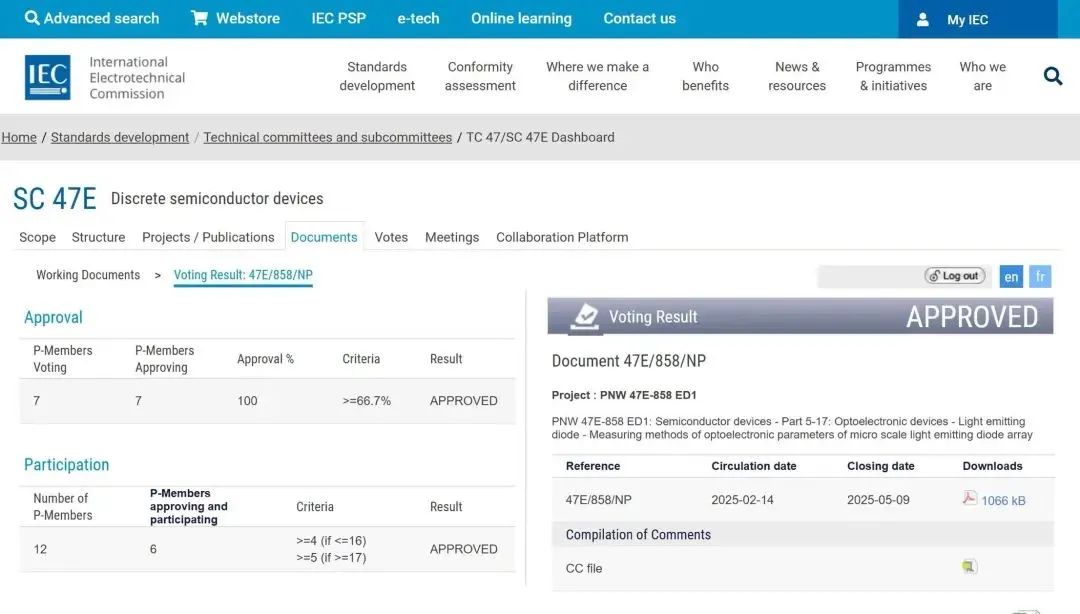 近日,維信諾參股子公司辰顯光電在國際電工委員會(IEC)牽頭制定的國際標(biāo)準(zhǔn)提案《半導(dǎo)體器件 第5-17部分:光電子器件 發(fā)光二極管 微型發(fā)光二極管陣列器件光電參數(shù)測試方法》通過了新工作項目提案(NP)投票。NP投票是國際標(biāo)準(zhǔn)從提案建議階段進入正式起草階段的重要節(jié)點,通常由國家成員體提出申請,國際標(biāo)準(zhǔn)化組織按照“一國一票”的原則組織各成員國進行投票表決。